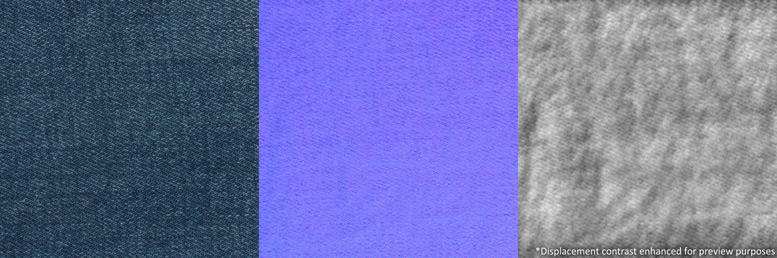 Scan Store Denim 3 PreviousDenim 2 NextDenim Pocket 1 Denim 3 Denim 3 £4.00 A surface scan of some denim. Please note that the displacement preview has its contrast boosted to be more visible in the 8bit preview. Includes:4k Diffuse map4k Normal map4k Displacement map Add To Cart